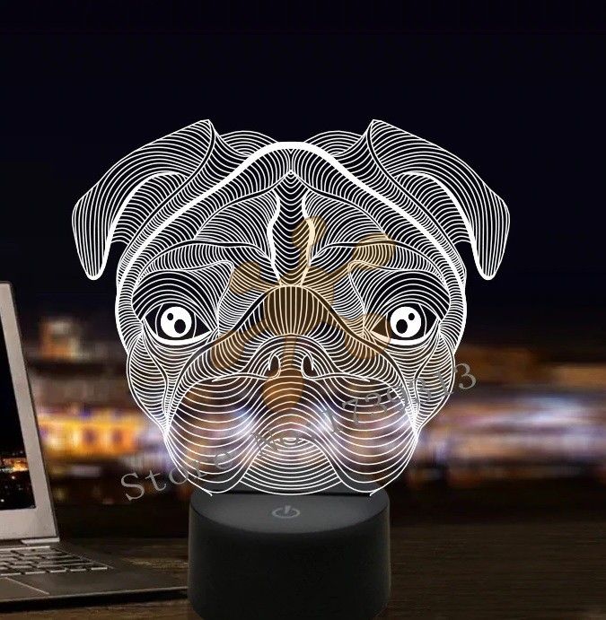Beling 3D lámpa, Pug Dog, 7 színű S413
